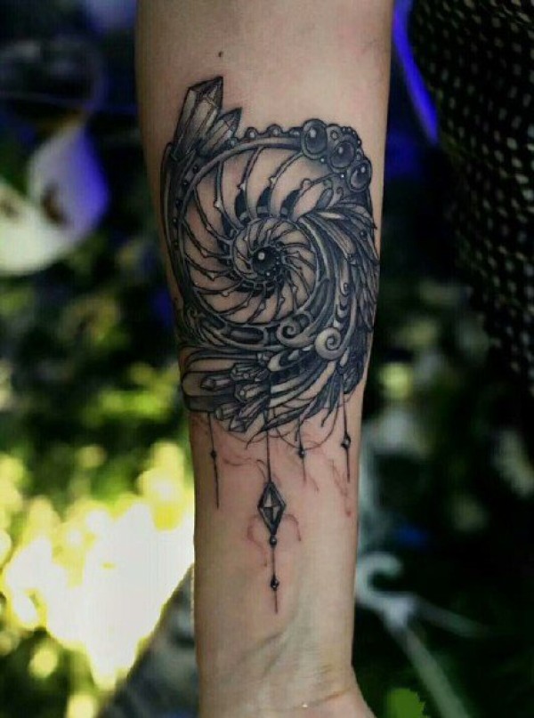 一组漂亮的海螺纹身图案作品9张