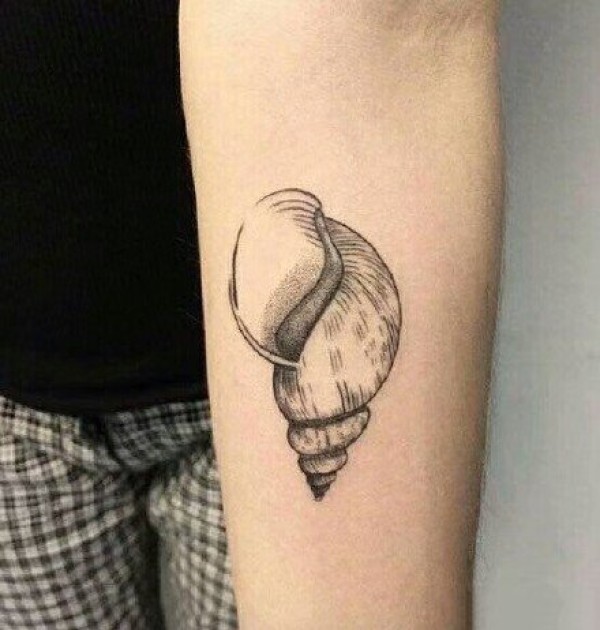 纹身锁骨女 女生锁骨下黑色的海螺纹身图片