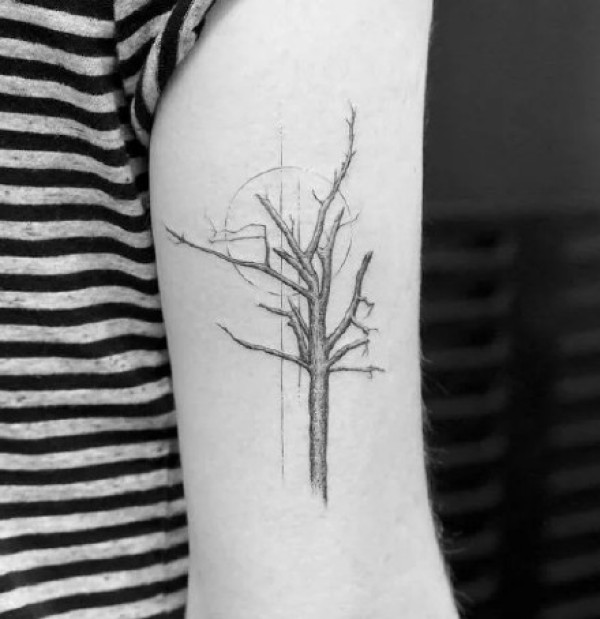 森林树木纹身图案_一组手臂上黑灰树木森林纹身图案作品