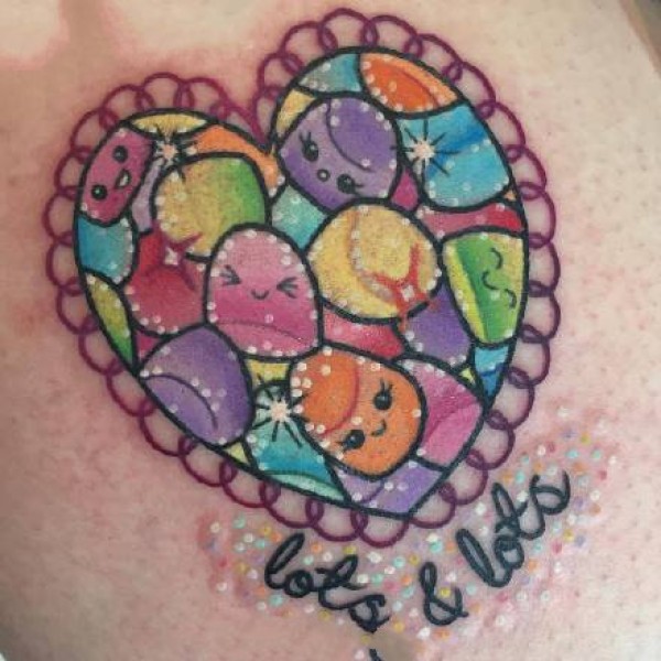 女生锁骨下黑灰素描点刺技巧创意比心纹身图片