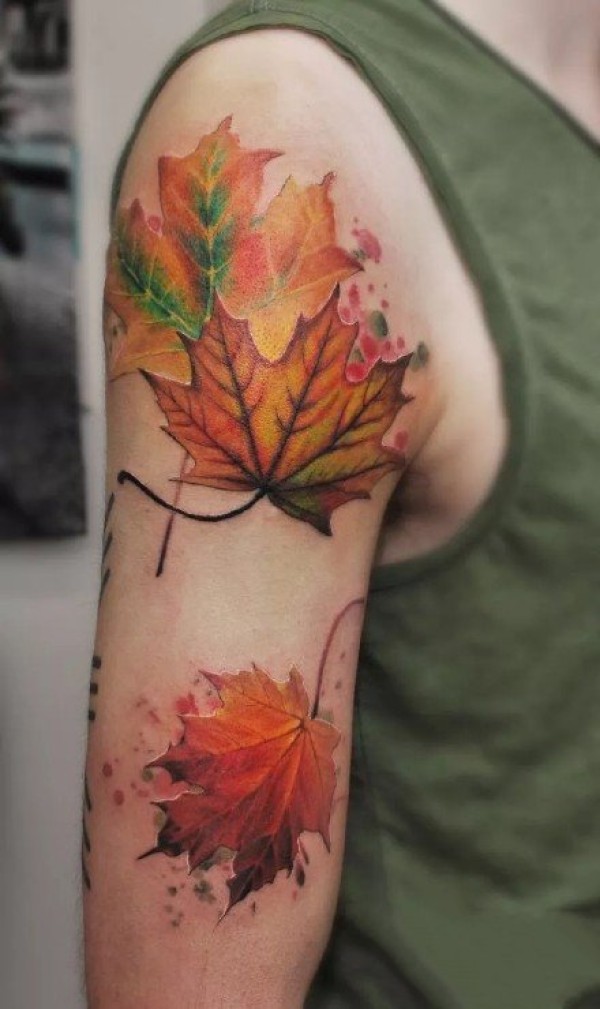 枫叶纹身图片:漂亮的一组枫叶纹身作品图片欣赏
