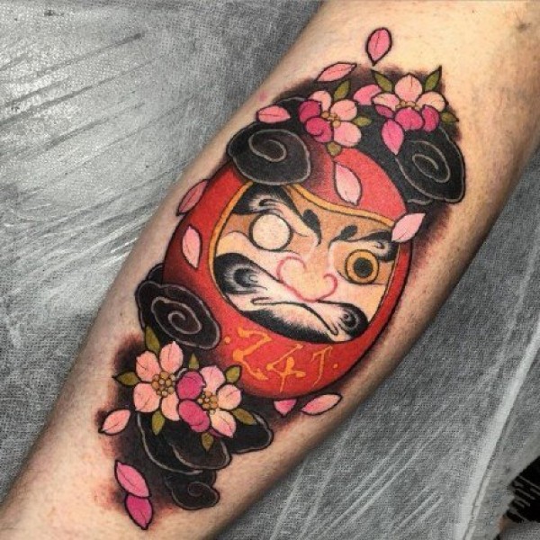 达摩蛋纹身--9张好看的日式樱花达摩蛋的纹身图案