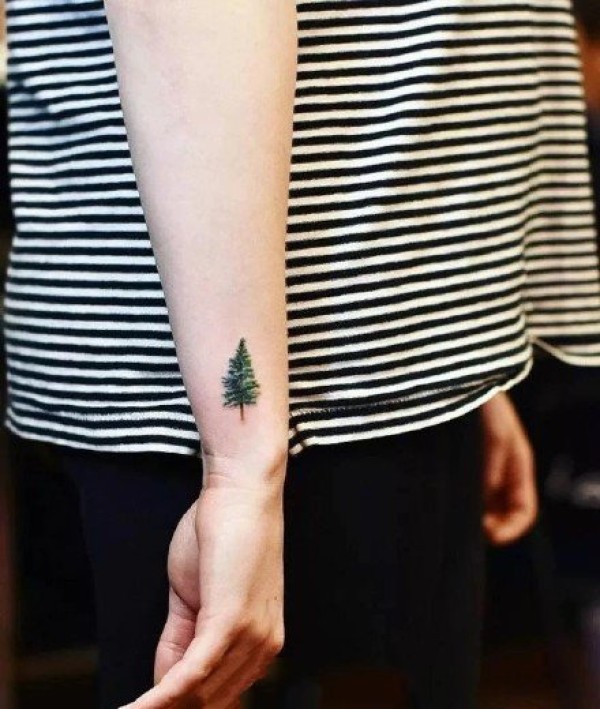 树纹身:9张简约的小黑灰色树木纹身作品图案