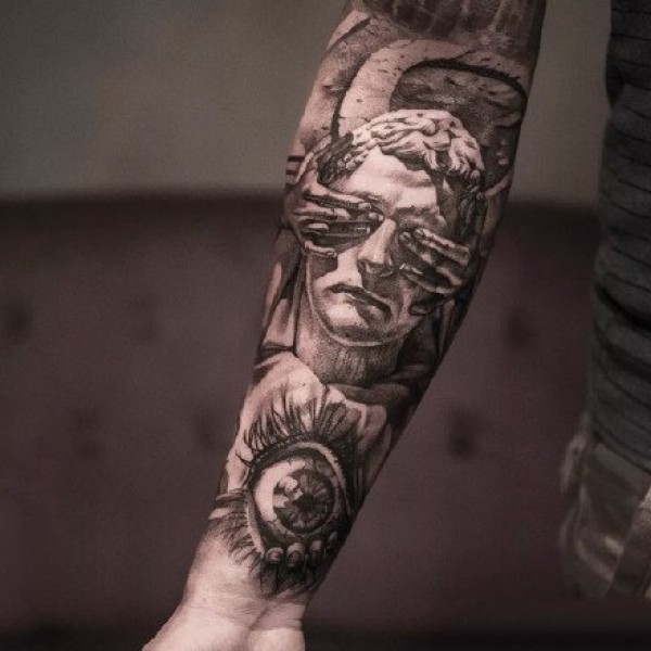 18张欧美大黑灰手臂写实纹身作品图案