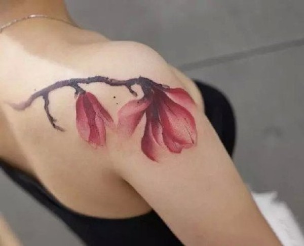 纹在后肩处的一组漂亮水墨风格纹身图片