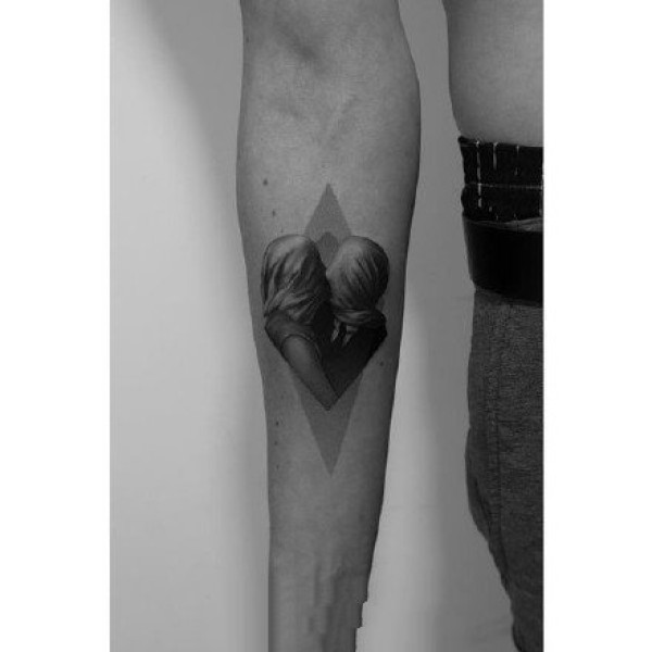 心脏纹身图案 女生手臂上黑灰纹身心脏纹身图案