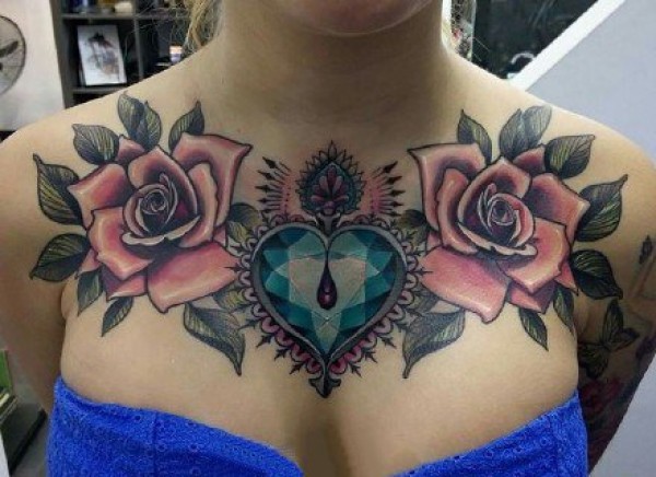 女性大花胸纹身_43张霸气漂亮的女性大花胸纹身图案作品