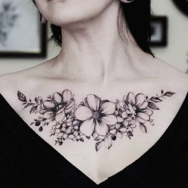 性感花胸纹身 女生胸部性感的肩花和花胸纹身图案