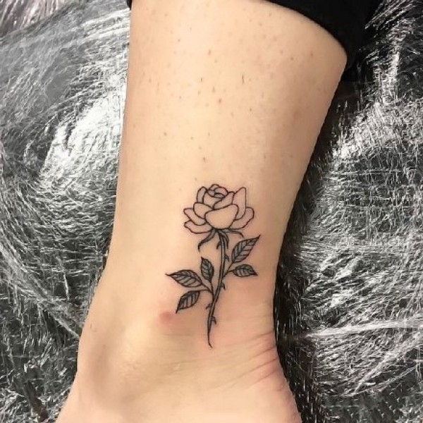 小腿玫瑰花纹身:9张小腿上漂亮的一组玫瑰花纹身图案
