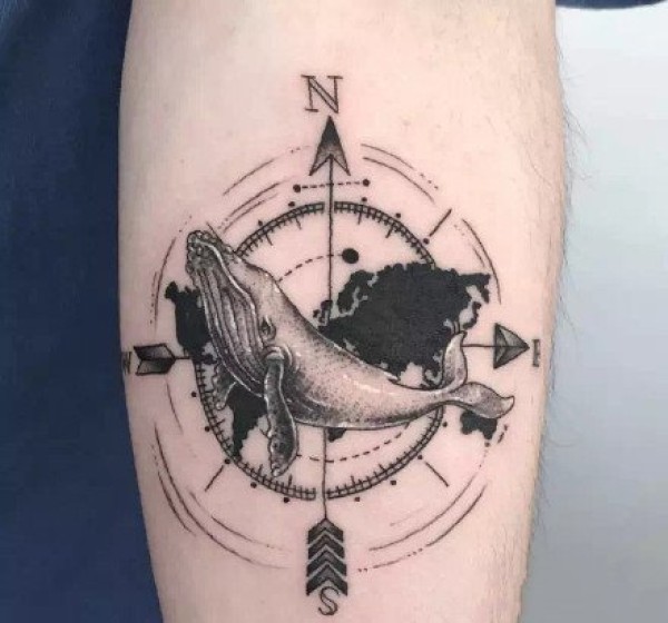 一组和鲸鱼主题相关的纹身图案作品和手稿欣赏