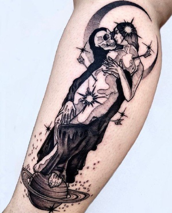 太阳和月亮组成的一波创意日月纹身图案