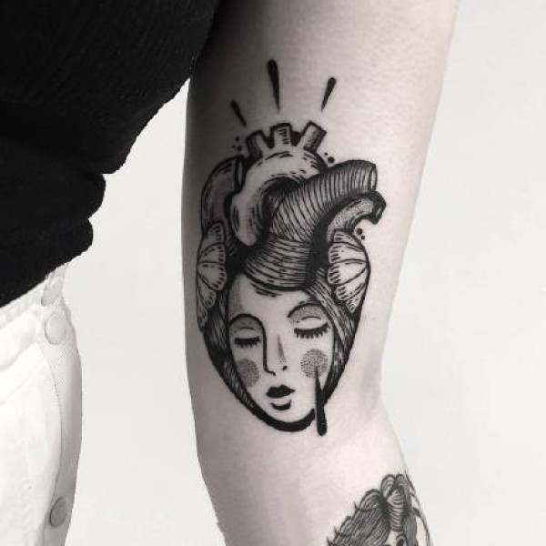 心脏纹身图案 女生手臂上黑灰纹身心脏纹身图案