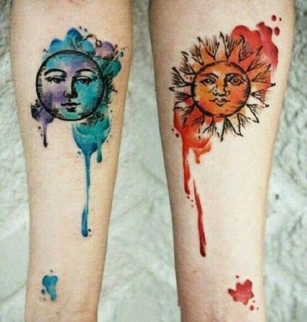 日月纹身--很适合情侣的太阳月亮的成对日月纹身图案