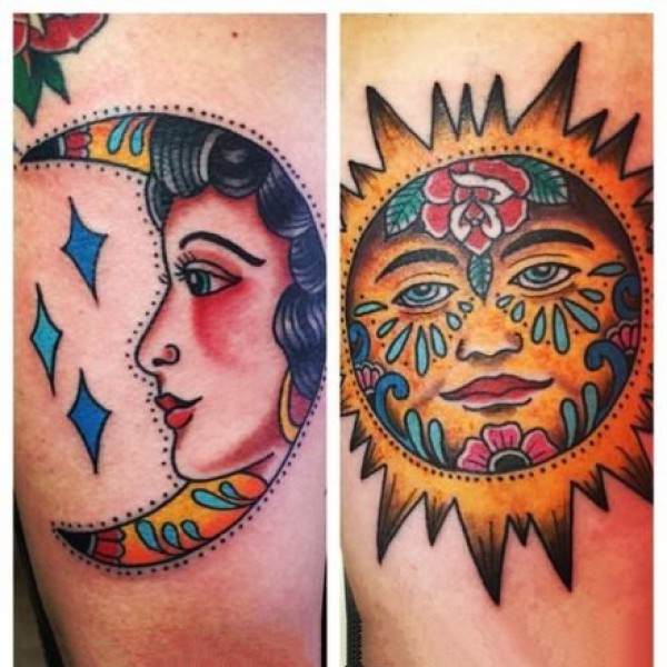 日月纹身--很适合情侣的太阳月亮的成对日月纹身图案