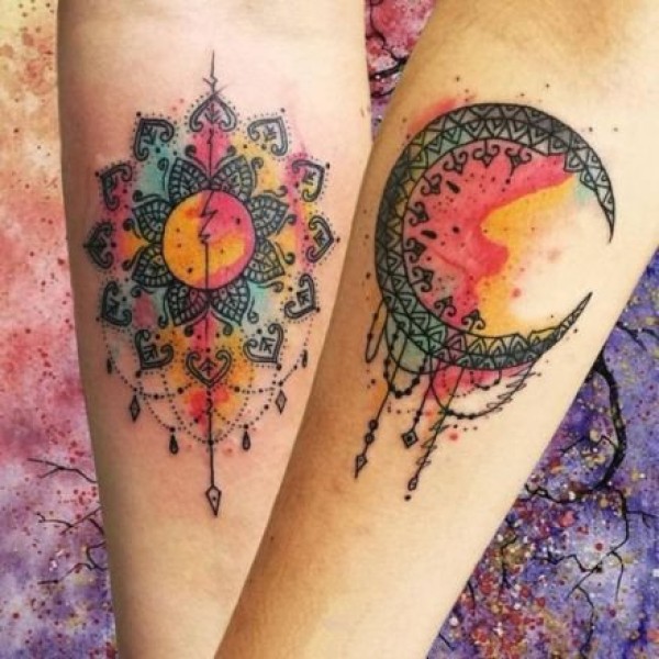 日月纹身--很适合情侣的太阳月亮的成对日月纹身图案