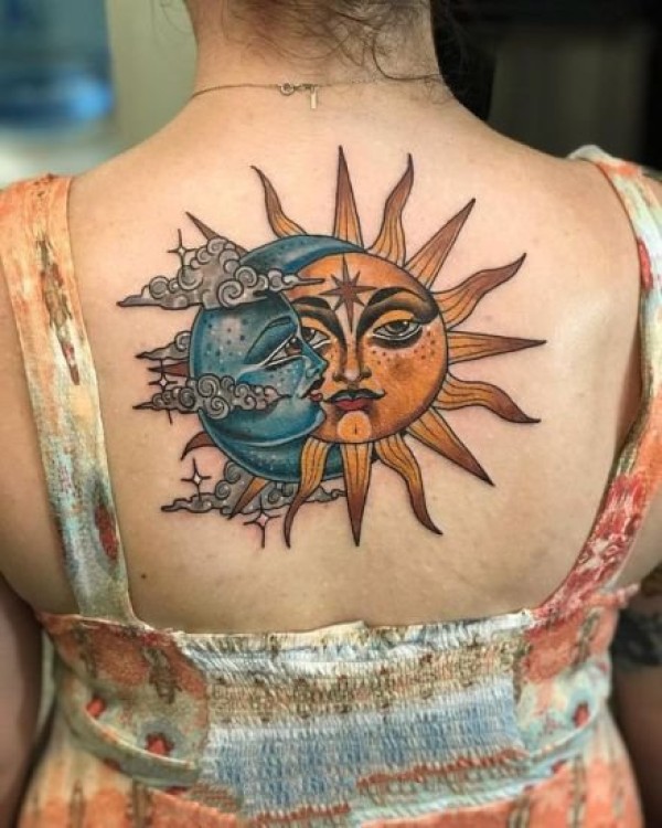 太阳和月亮纹身图案 闪亮而又耀眼的日月主题纹身图案