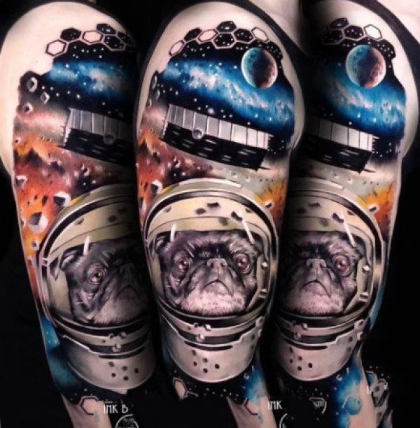 宇航员纹身图案--9张彩色宇航员星空星球宇宙纹身作品