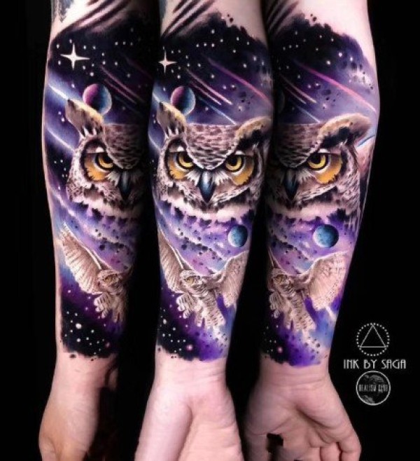 炫彩梦幻星空的潮流纹身图案