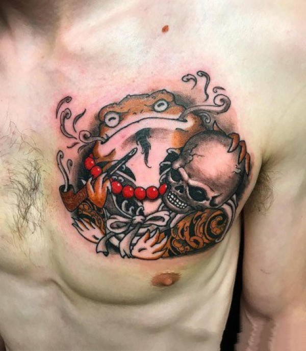 纹身图吧分享一张腰部招财蟾蜍纹身图案