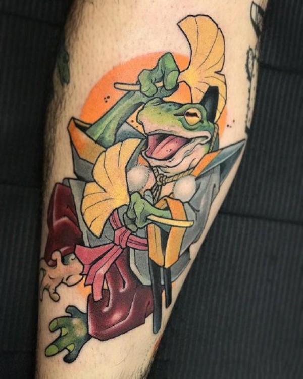 纹身图吧分享一张腰部招财蟾蜍纹身图案