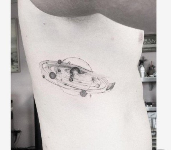 星球宇宙纹身 经典的一组点刺星球纹身图案