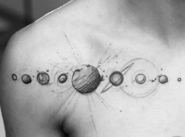 星球宇宙纹身 经典的一组点刺星球纹身图案