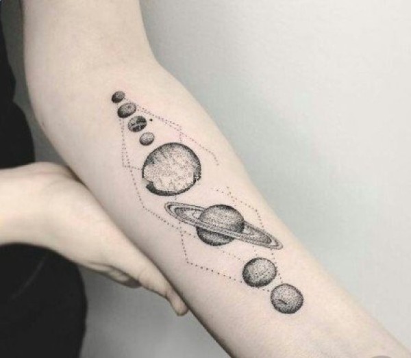 星球宇宙纹身 经典的一组点刺星球纹身图案