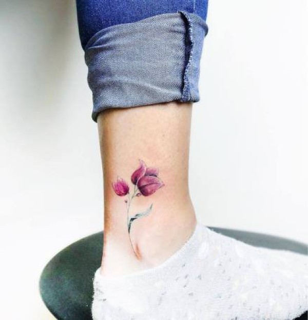 脚踝位置的超小清新花朵纹身作品