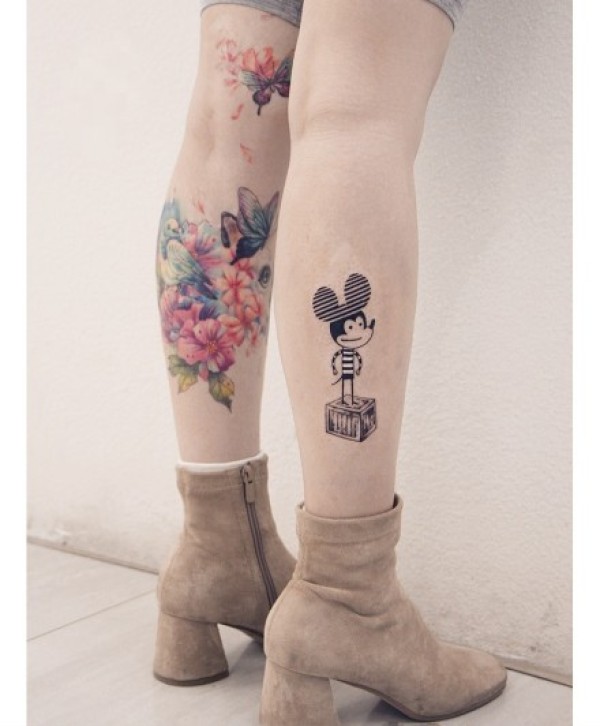女生们比较钟意的可爱米老鼠纹身