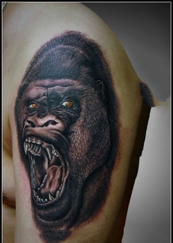 胸部非常逼真的咆哮大猩猩纹身图案