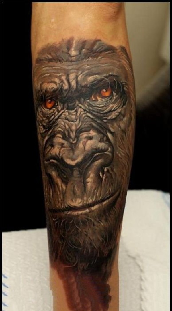 猴子纹身:好看的一组猴子猩猩主题的黑灰纹身图案