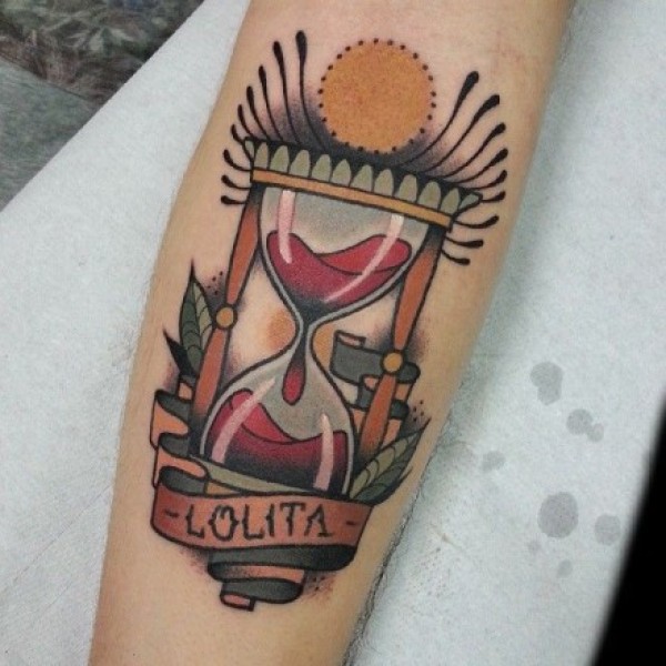 沙漏刺青+代表时间的小清新彩色沙漏纹身图案