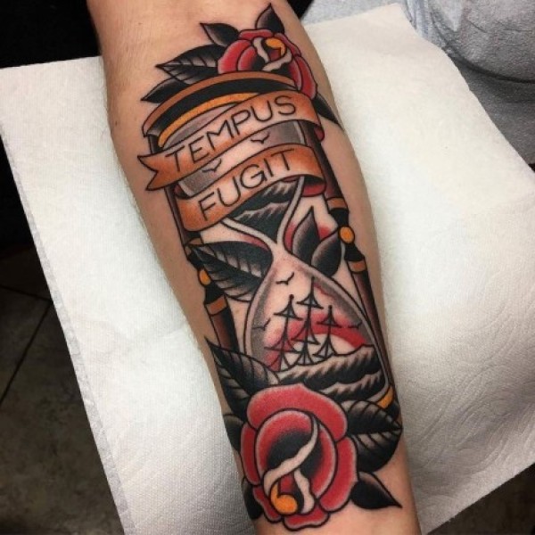 沙漏图案纹身 象征时间流逝的9张沙漏纹身图案
