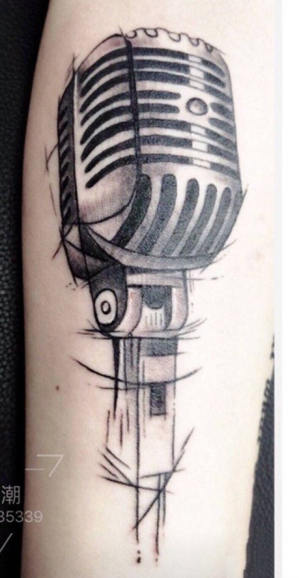 麦克风小纹身 男生手臂上黑色的麦克风纹身图片