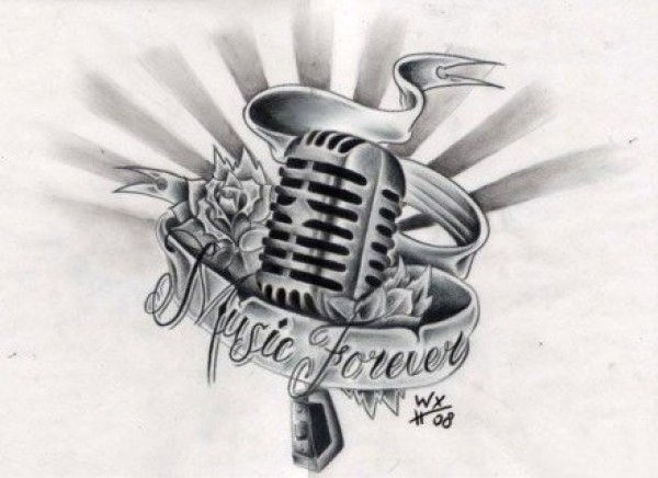 麦克风小纹身 男生手臂上黑色的麦克风纹身图片