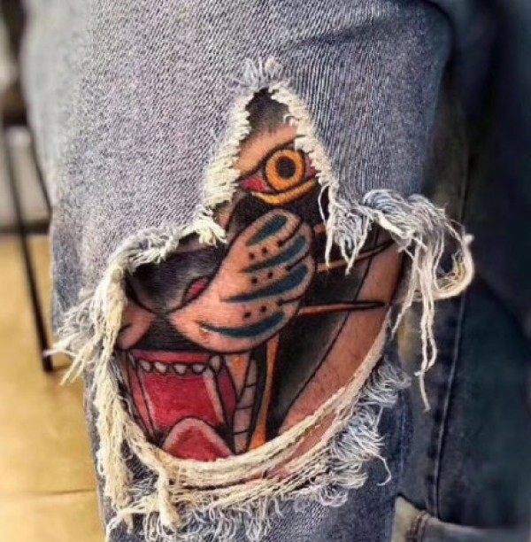 纹在膝盖上的一组创意纹身欣赏