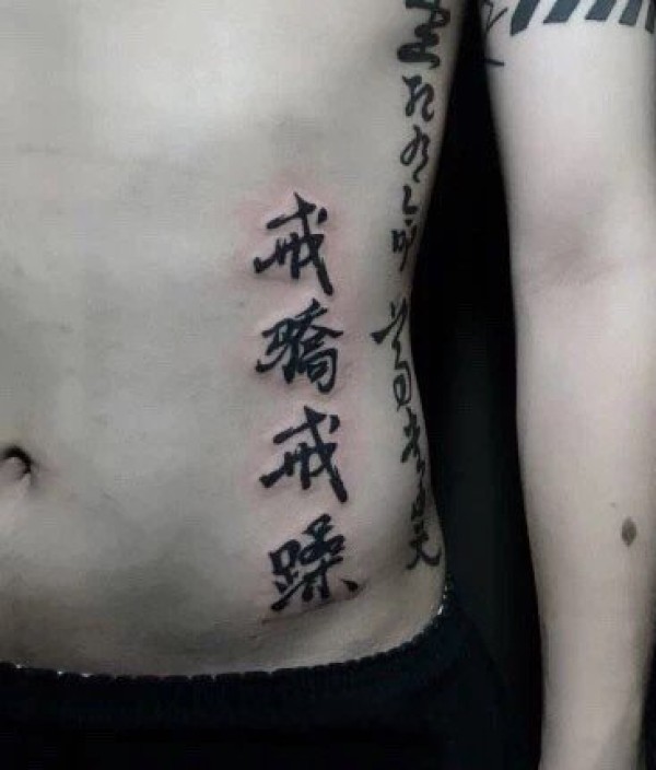 书法纹身 侧腰等部位的中文书法汉字纹身图案