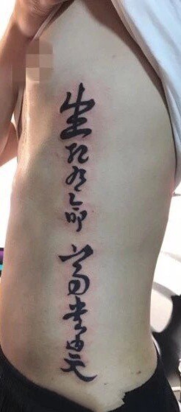 书法纹身 侧腰等部位的中文书法汉字纹身图案