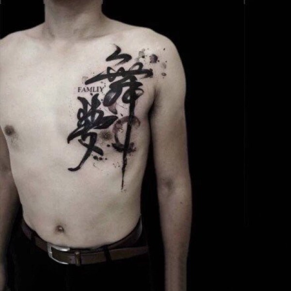 水墨书法风格的纹身-每个字背后都蕴含着深刻的含义