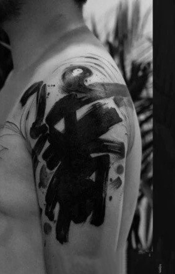 水墨书法风格的纹身-每个字背后都蕴含着深刻的含义