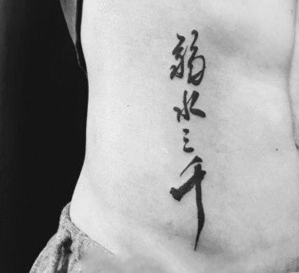书法纹身 侧腰等部位的中文书法汉字纹身图案