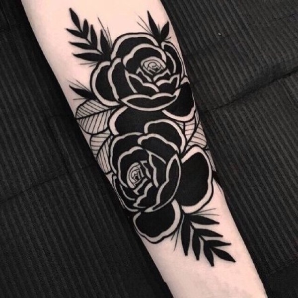 黑色玫瑰花纹身图案-9张黑色的玫瑰花纹身图片