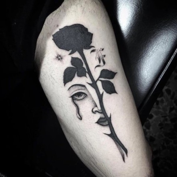 黑色玫瑰花纹身图案-9张黑色的玫瑰花纹身图片