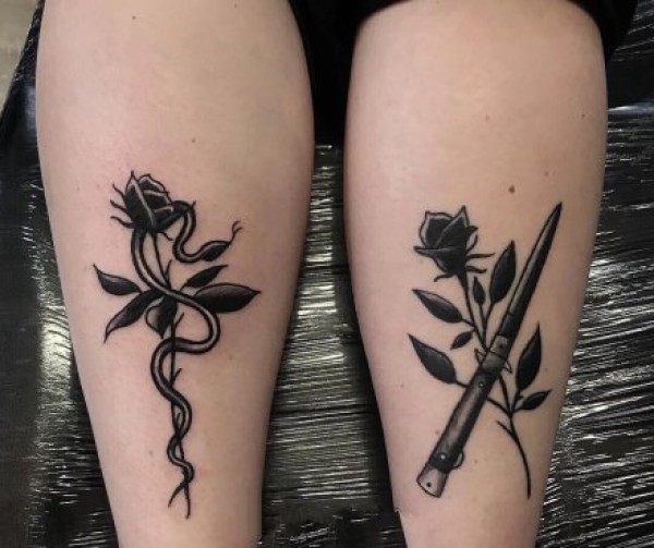 小腿玫瑰花纹身:9张小腿上漂亮的一组玫瑰花纹身图案