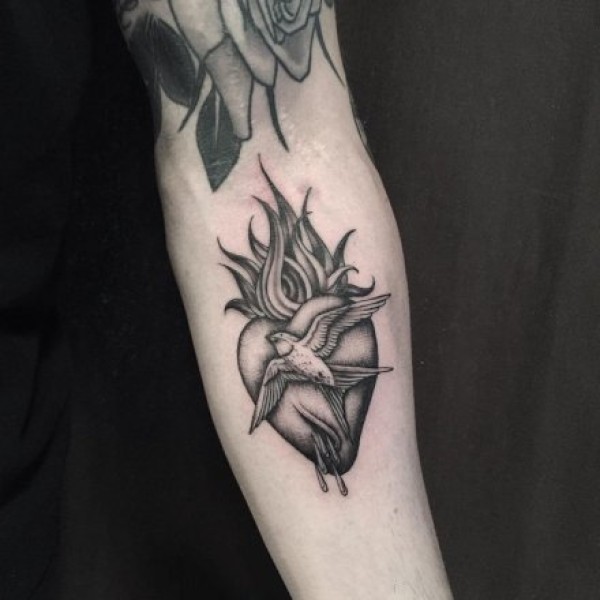 心脏纹身图案 女生手臂上黑灰纹身心脏纹身图案