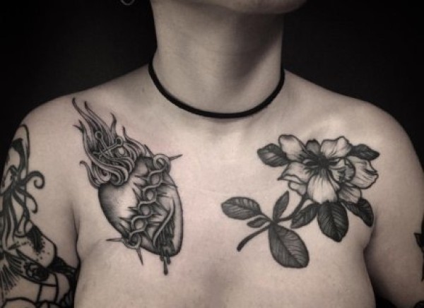 心脏纹身图案 女生手臂上黑灰纹身心脏纹身图案