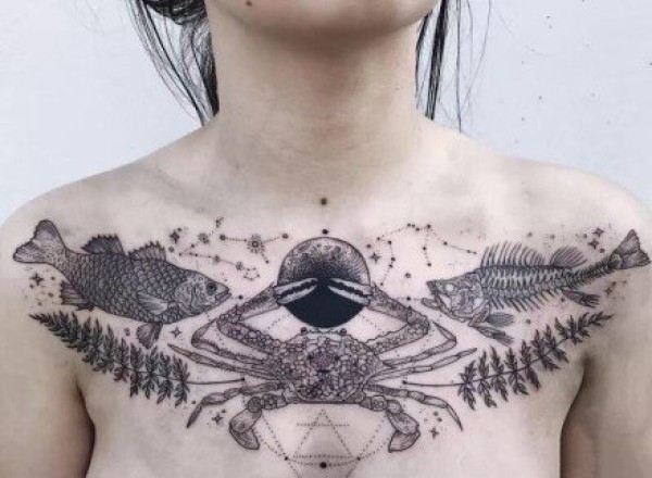 双鱼座纹身手稿_45张十二星座之双鱼手稿纹身图案