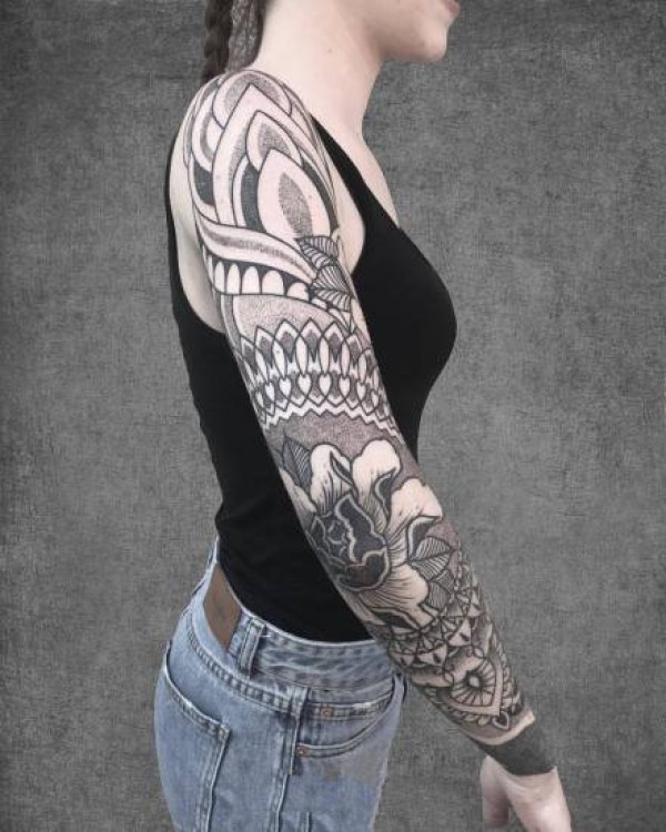 欧美花臂纹身_22张霸气黑灰欧美大黑花臂纹身图案作品图片