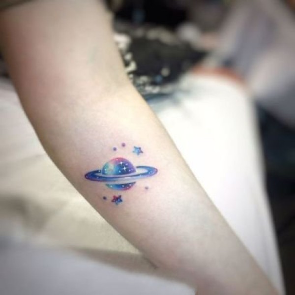 一组炫彩色星空星球宇宙相关的纹身图案作品