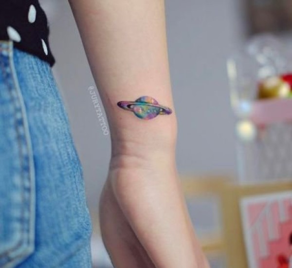 一组炫彩色星空星球宇宙相关的纹身图案作品